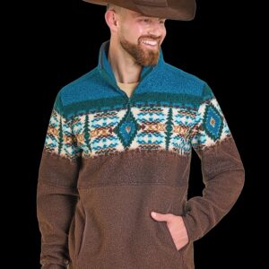 Panhandle Slim® Brown/Teal/Creme Aztec Border Fleece 1/4/ Zip Men’s Pullover