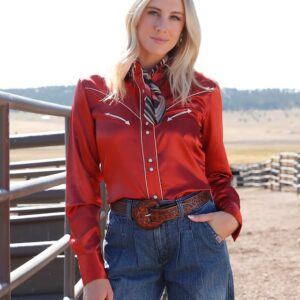 Cruel® Denim Red/Orange Satin LS Women’s Shirt